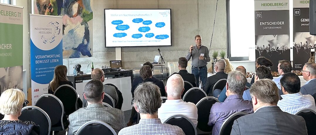 Rund 30 Teilnehmer.innen aus der Wirtschaft und von Behörden fanden sich in den Räumlichkeiten des neuen Industriekreis-Mitglieds Heidelberg iT am Kurpfalzring ein: Das Nachbarschaftstreffen hat bereits jahrelange Tradition und bietet den Nachbar.innen und Unternehmen im ältesten Industriegebiet Heidelbergs – dem Pfaffengrund – die Gelegenheit, sich in lockerer Atmosphäre über aktuelle Themen auszutauschen. Mit dabei sind Vertreter.innen der Stadt Heidelberg und Stadtwerke aus verschiedenen Fachbereichen.